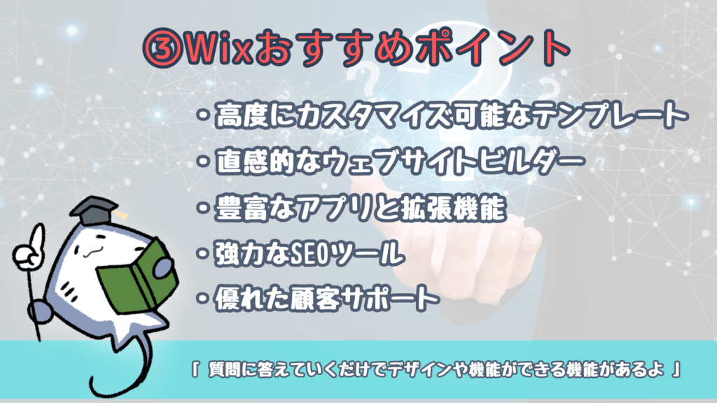 これらの特徴により、Wixは特に初心者にとって扱いやすいプラットフォームでありながら、プロフェッショナルレベルの要求にも応えることができる非常に柔軟なウェブサイトビルダーです。