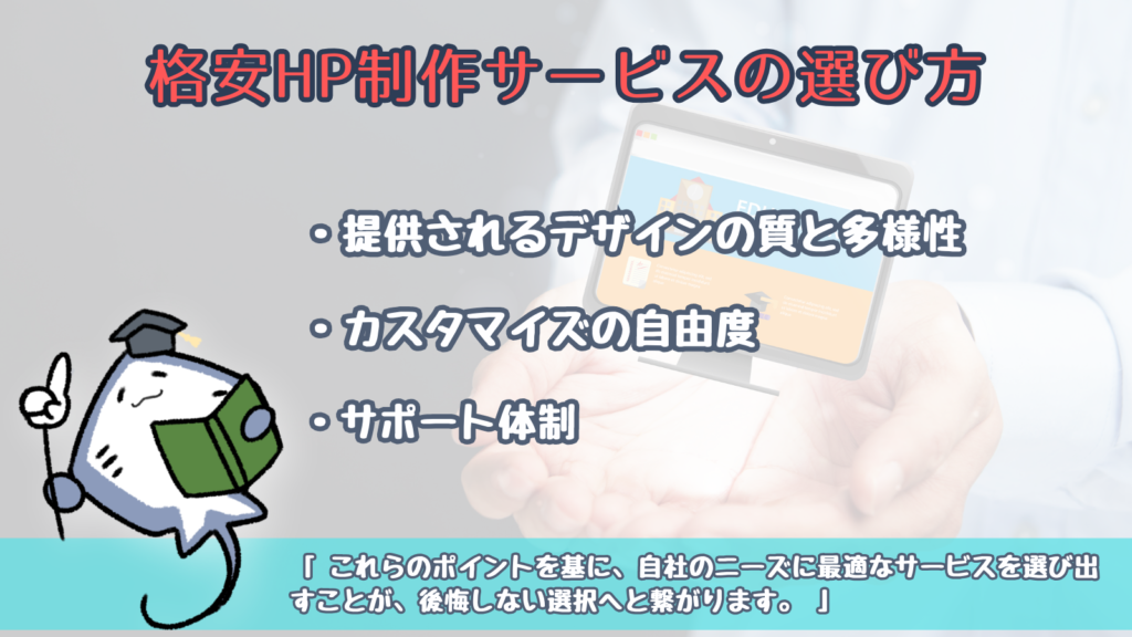 予算に制約がある中小企業にとって、サービスの選定は極めて重要です。何を重視するか? それは価格だけではありません。費用対効果の高いサービスを見極めるには、いくつかのチェックポイントがあります。まず、提供されるデザインの質と多様性を評価しましょう。魅力的なデザインは訪問者の滞在時間を延ばし、結果としてコンバージョン率を向上させます。