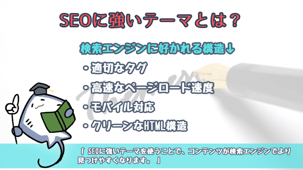 SEOに強いテーマとは、検索エンジンのアルゴリズムを意識して設計され、コンテンツが検索結果で上位に表示されるように最適化されたウェブサイトの枠組みです。これは、ただ美しいデザインを持つだけでなく、GoogleやBingのような検索エンジンに「好かれる」構造をしていることが求められます。例えば、適切なタグの使用、高速なページロード速度、モバイル対応、そしてクリーンなHTML構造が含まれます。