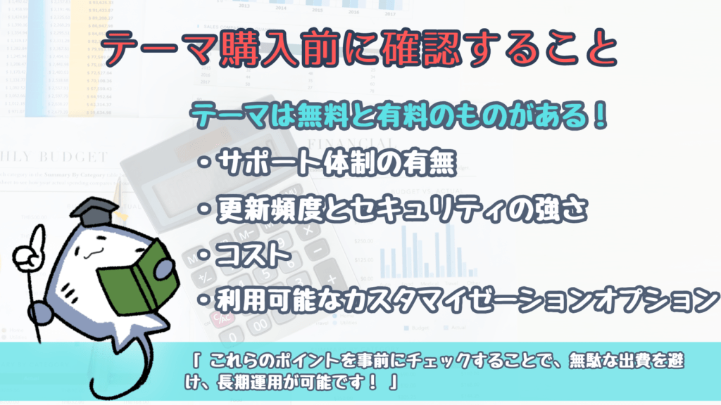 さらに、コストと利用可能なカスタマイゼーションオプションを慎重に考えることも大切です。予算内で最大の価値を提供するテーマを選び、将来的にサイトが成長しても柔軟に対応できるかどうかを確認してください。これらのポイントを事前にチェックすることで、無駄な出費を避け、長期にわたるウェブサイトの成功を確実にすることができます。